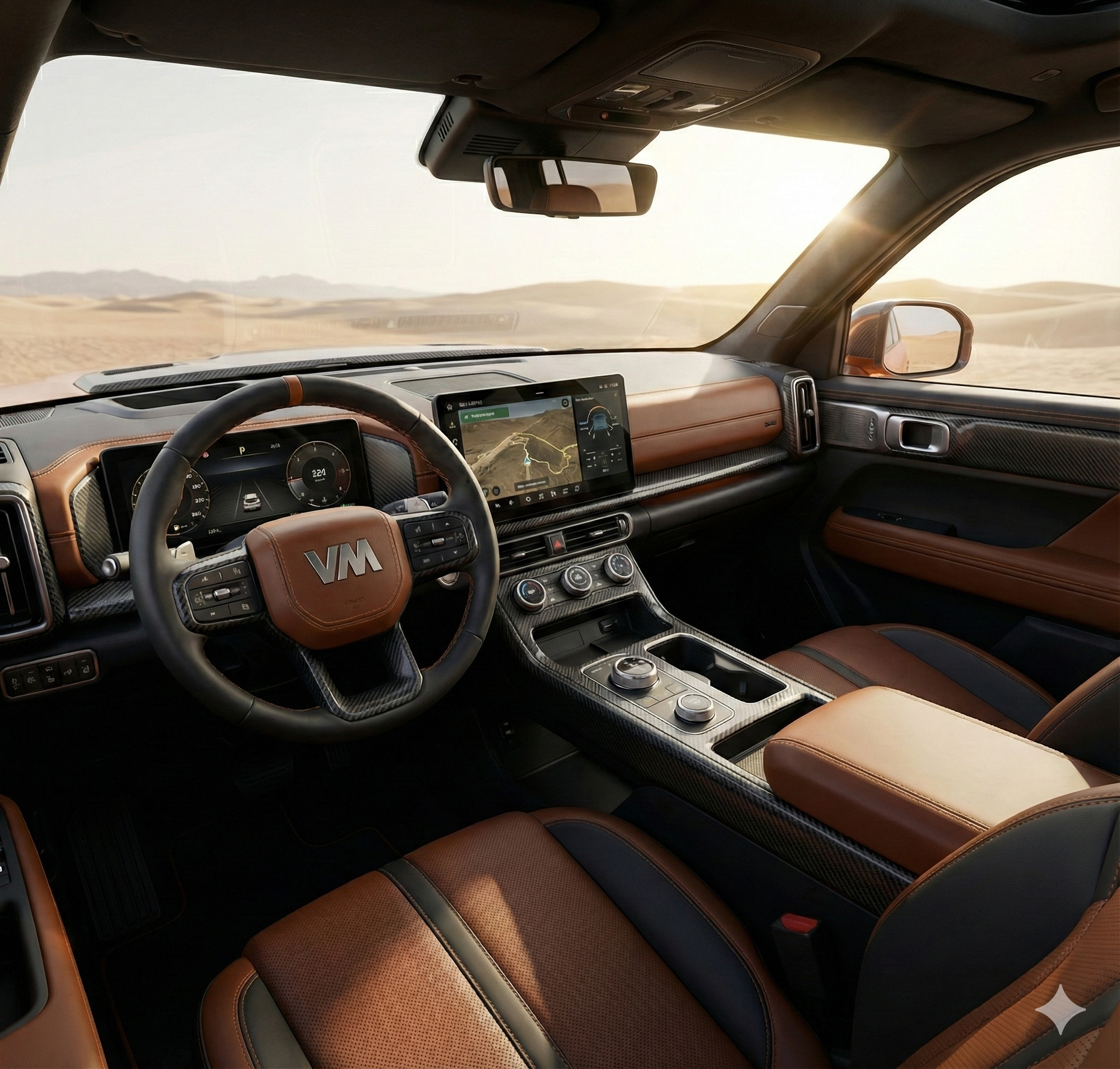 Suspension: Adaptive air suspension, height-adjustable according to driving mode (Road, Sand, Rocks).
